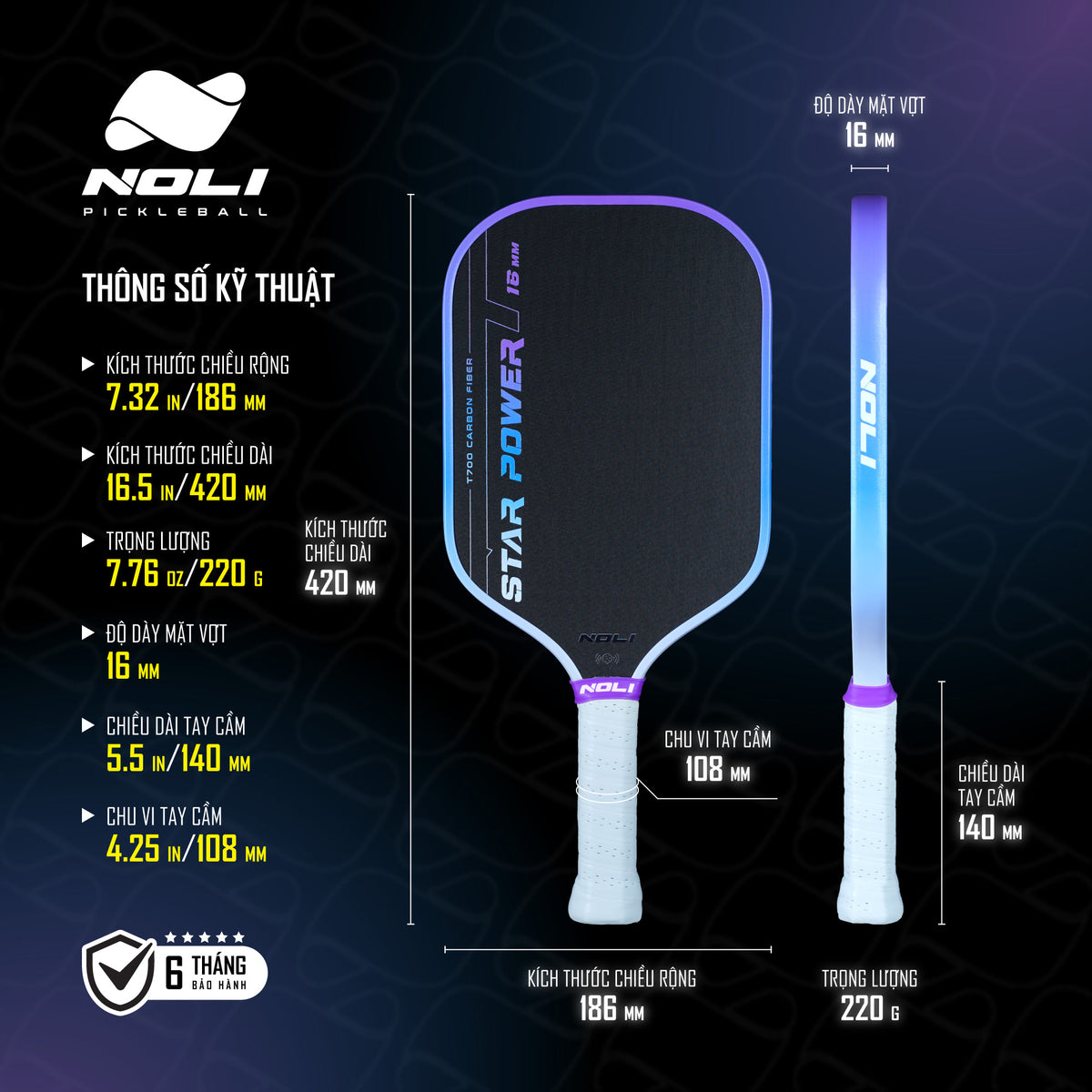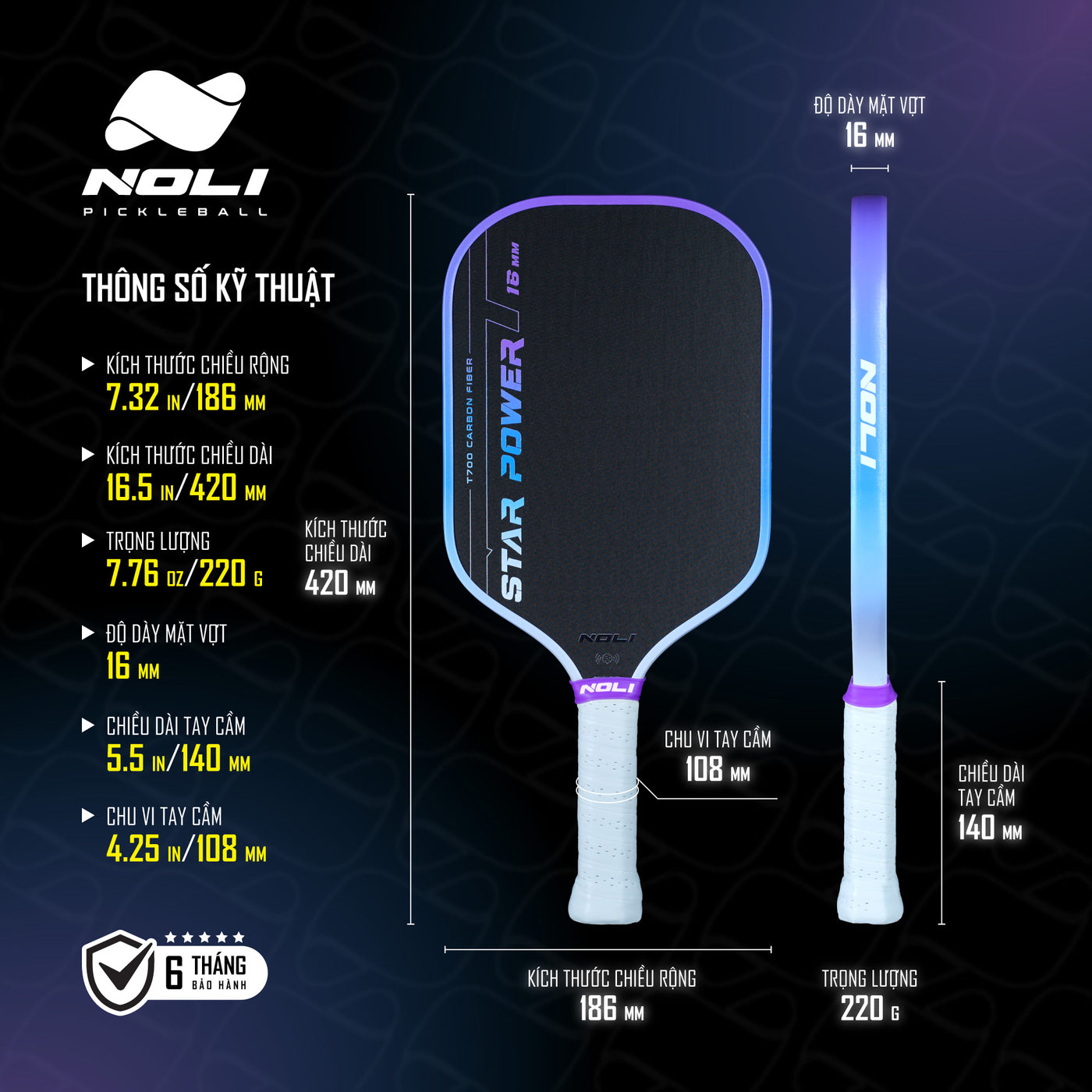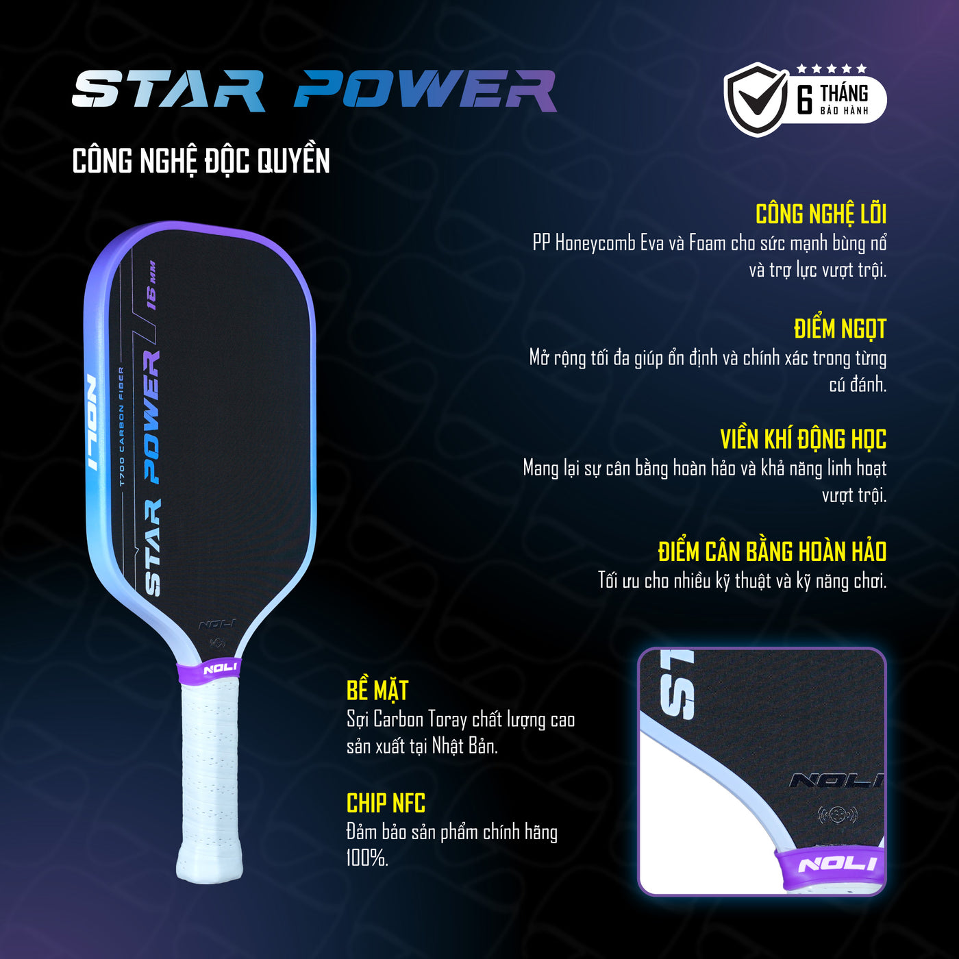 NOLI Star Power Pickleball Paddle 16mm – NFC Chip, T700 Carbon